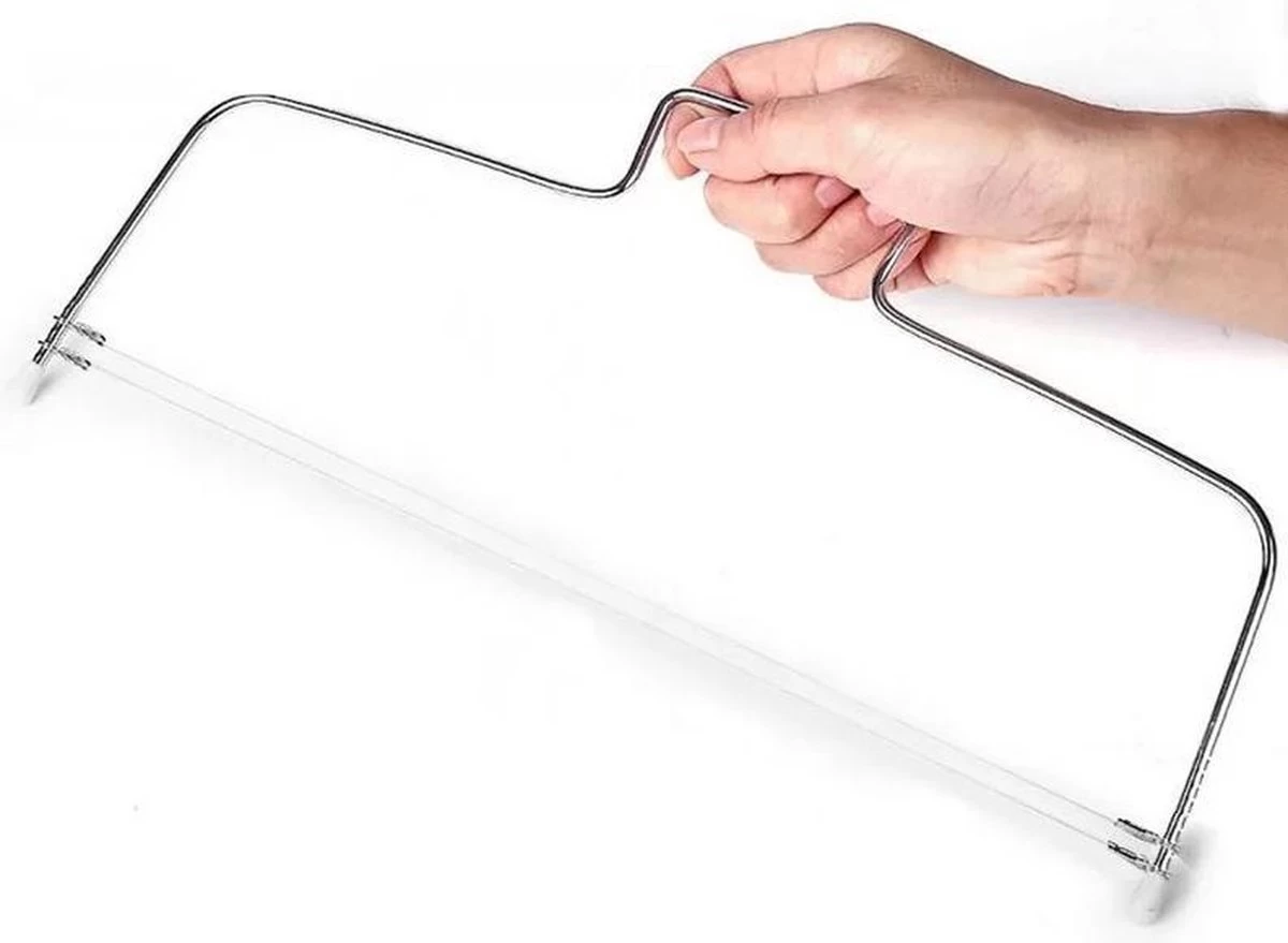 Onmisbaar voor het recht horizontaal doorsnijden van taartbodems. Deze taartzaag is in hoogte verstelbaar.